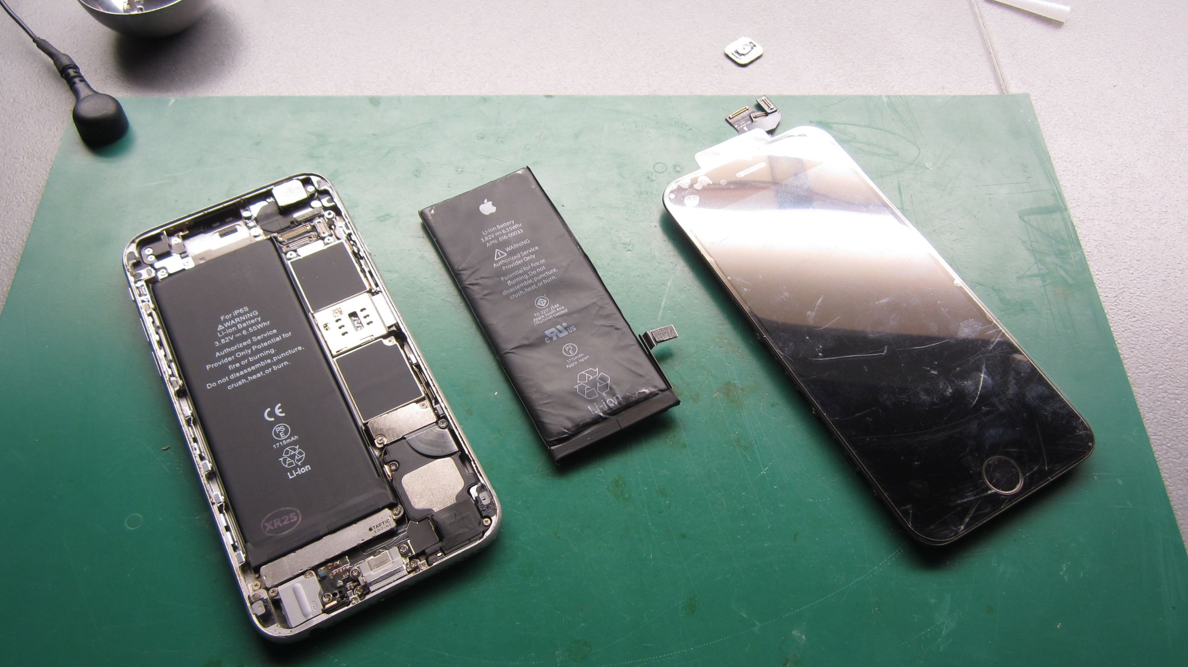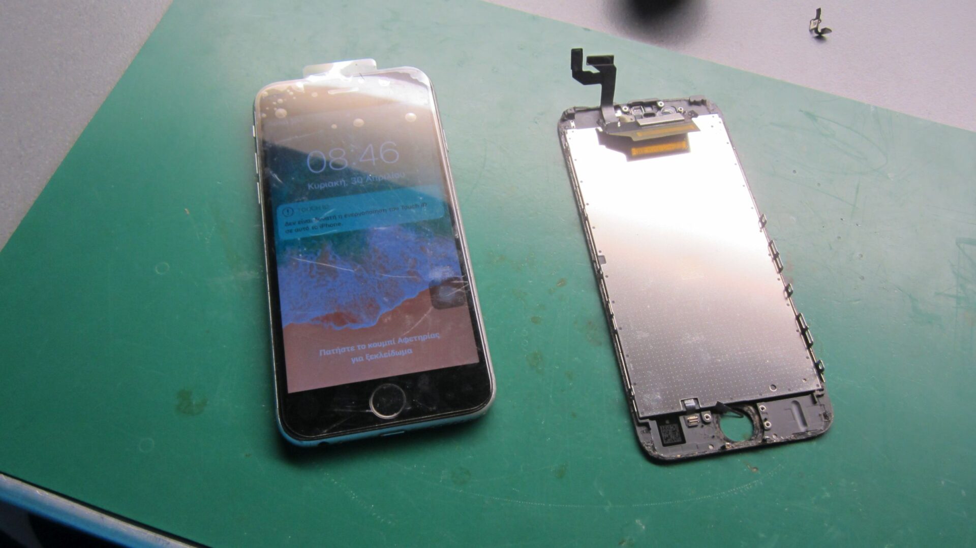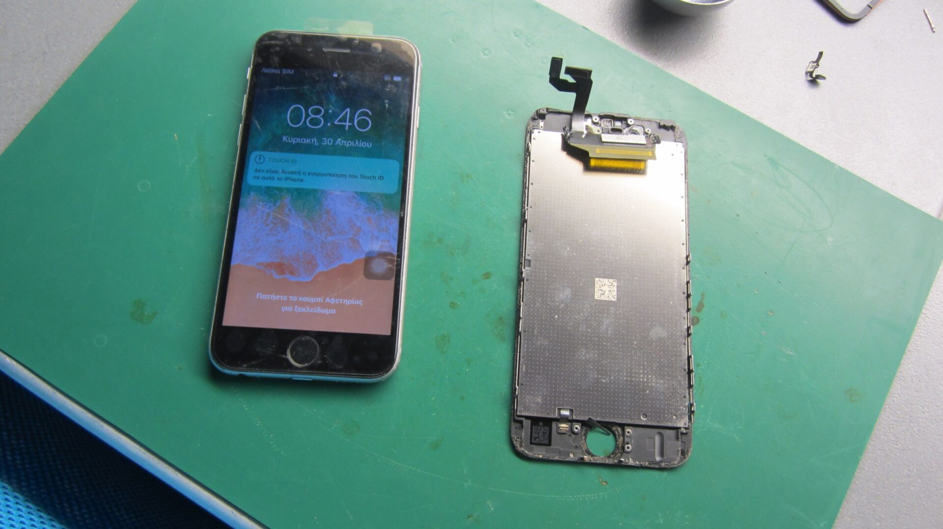 Στο εργαστήριο μας ήρθε το παρακάτω iPhone 6S με χαλασμένη την οθόνη και την μπαταρία. Για την επισκευή αντικαταστάθηκαν και τα δύο με OEM ανταλλακτικά.