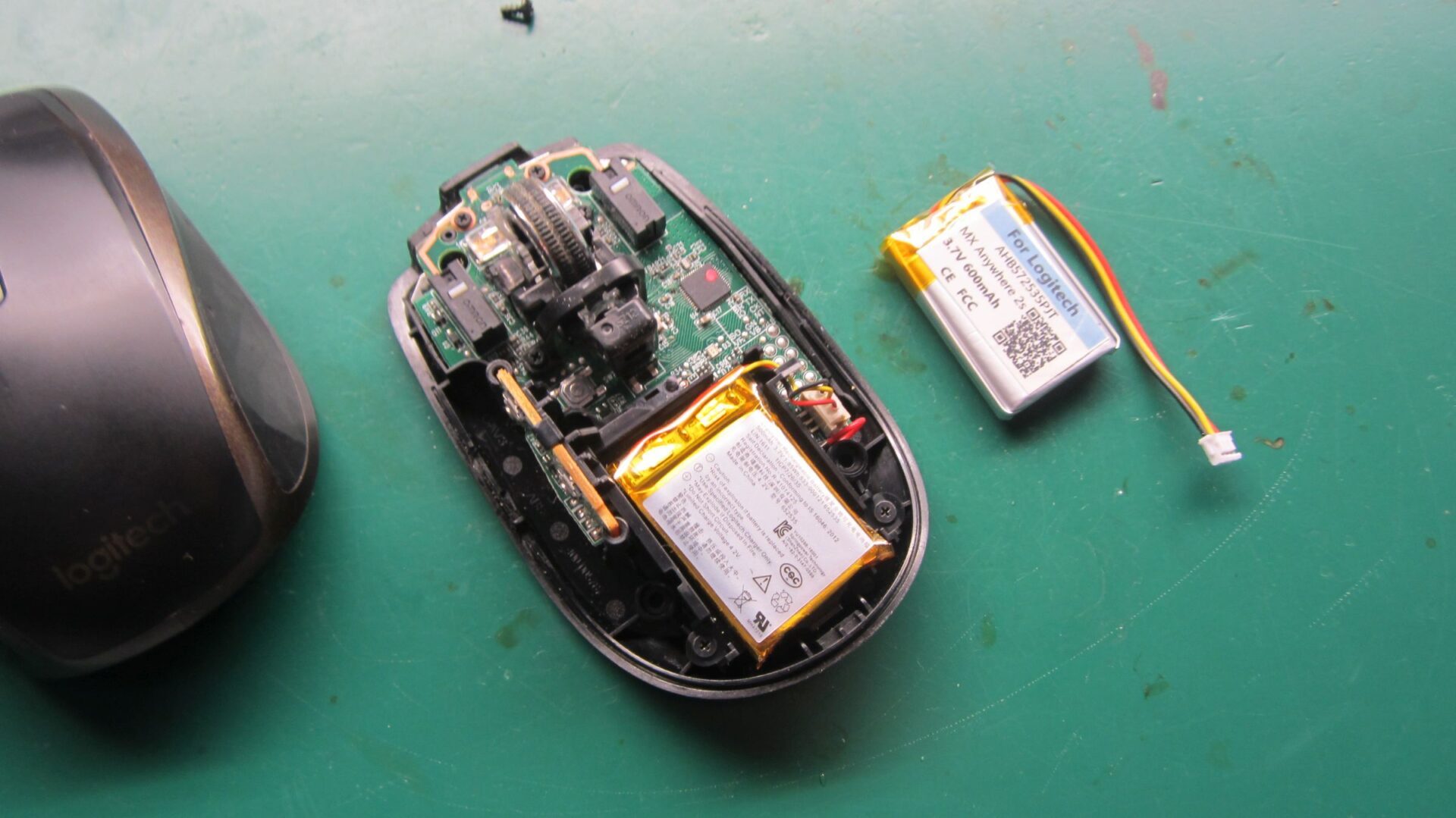 Στο παρακάτω ποντίκι Logitech MX Anywhere έγινε αντικατάσταση της μπαταρίας με καινούρια και παραδόθηκε στον ιδιοκτήτη του πλήρως λειτουργικό.