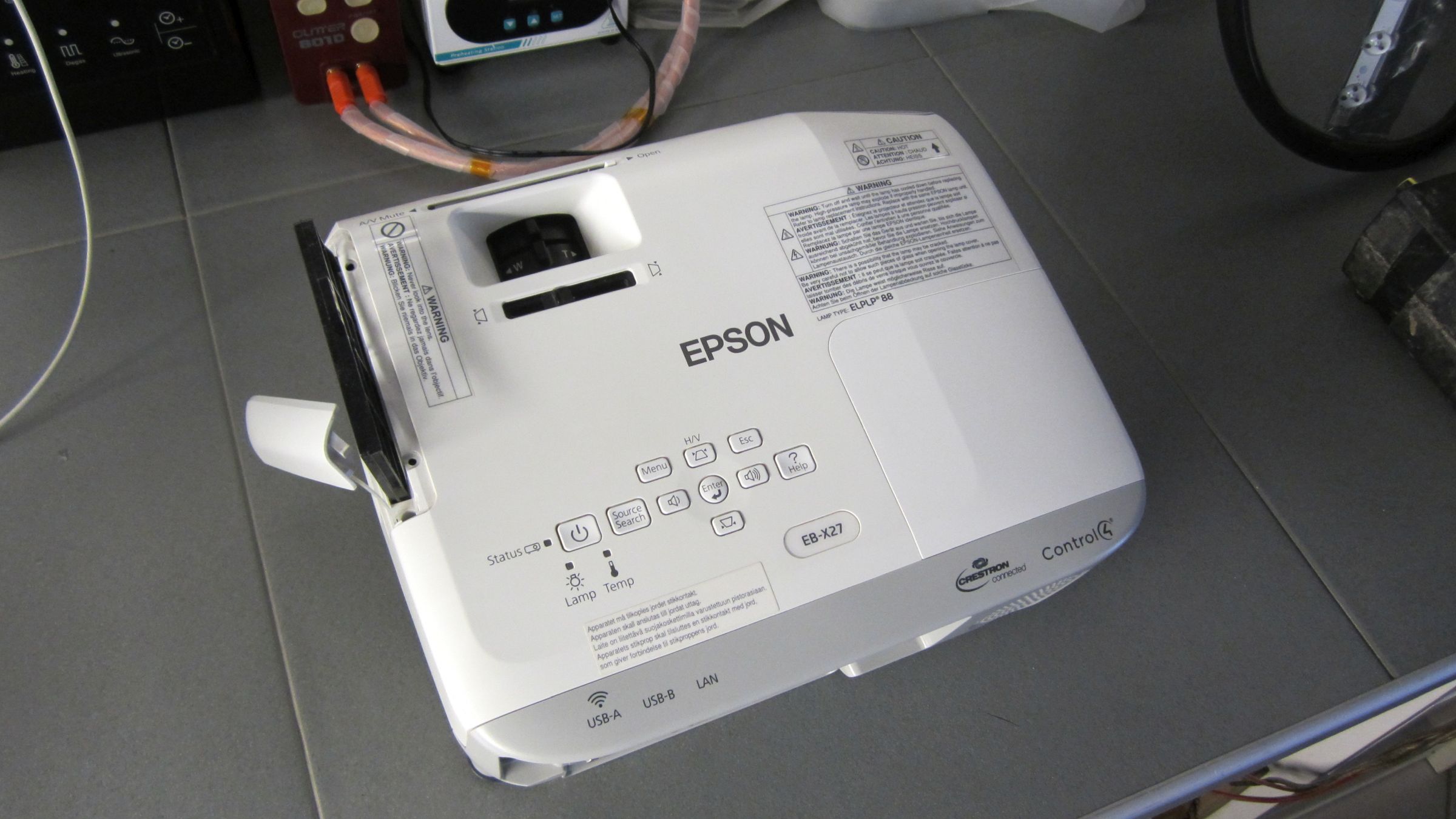 Στον παρακάτω προτζέκτορα EPSON EB-X27 έγινε συντήρηση με εσωτερικό καθαρισμό και αλλαγή του φίλτρου αέρα ψύξης.
