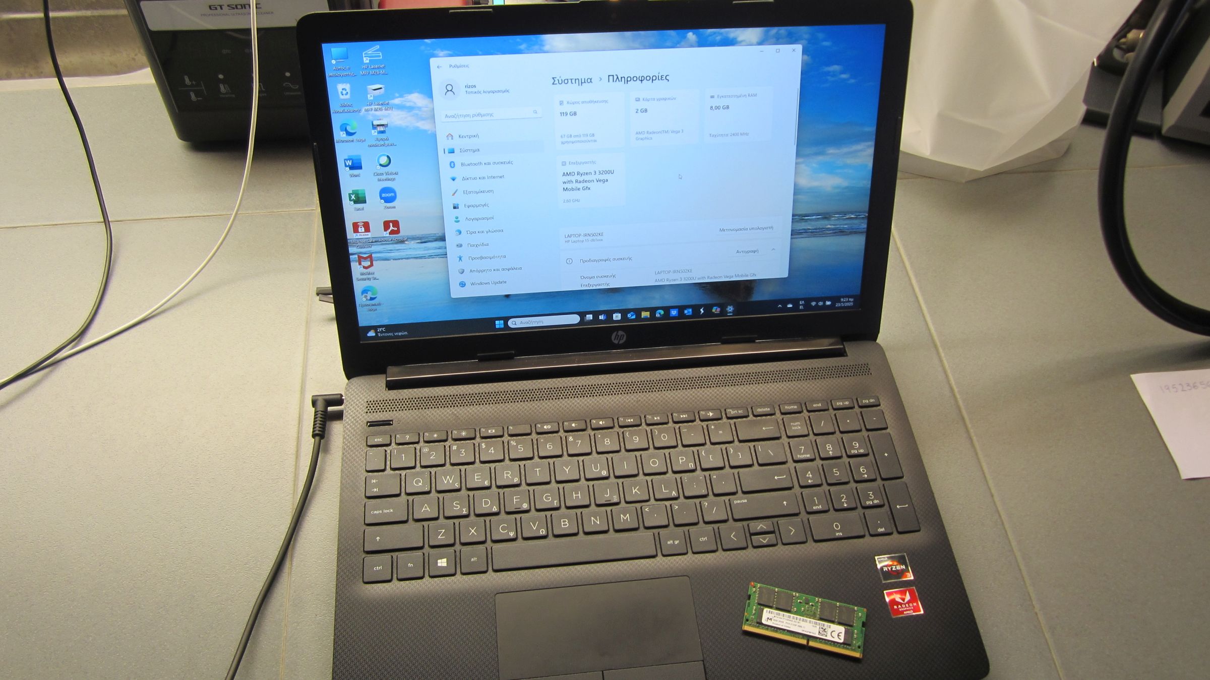 Στο εργαστήριο μας έγινε αναβάθμιση της μνήμης laptop HP 15-db1031nv σε 8GB προσθέτοντας μια επιπλέον SODIMM 4GB