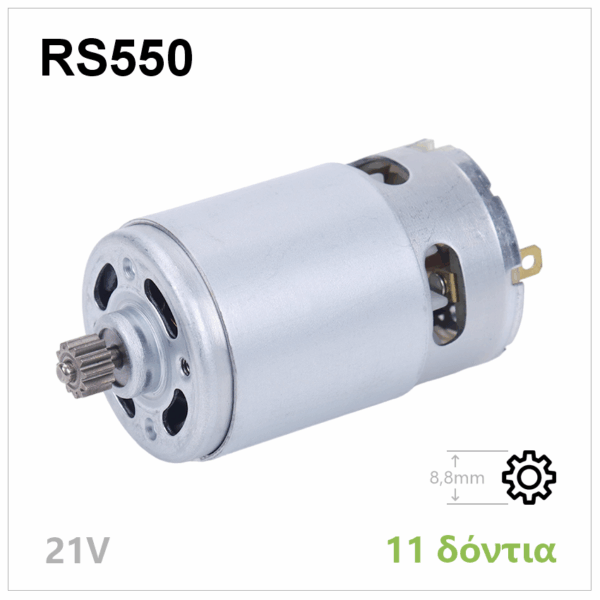 RS550 DC Μοτέρ ηλεκτρικών εργαλείων 18-21V . Το συγκεκριμένο μοτέρ είναι κατάλληλο για ηλεκτρικά εργαλεία, όπως δραπανοκατσάβιδα, γωνιακούς τροχούς, ηλεκτρικά αλυσοπρίονα κλπ