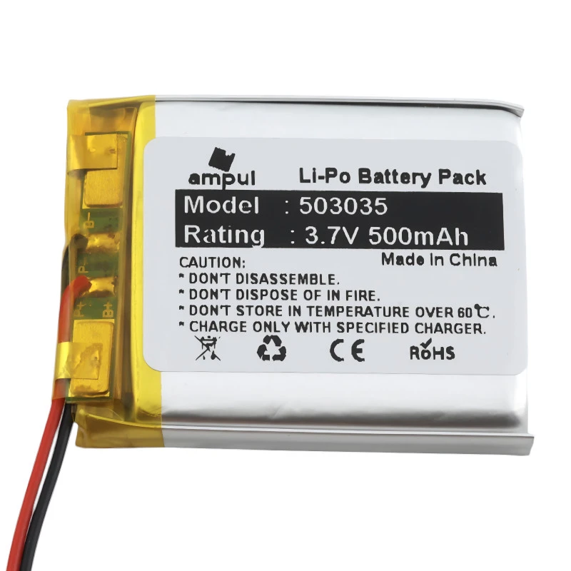 Επαναφορτιζόμενες μπαταρίες λιθίου-πολυμερούς (LiPo) 3.7V/500mAh διαστάσεων 503035 , ιδανικές για επαναφορτιζόμενα κολάρα εντοπισμού και εκπαιδευσης σκύλων