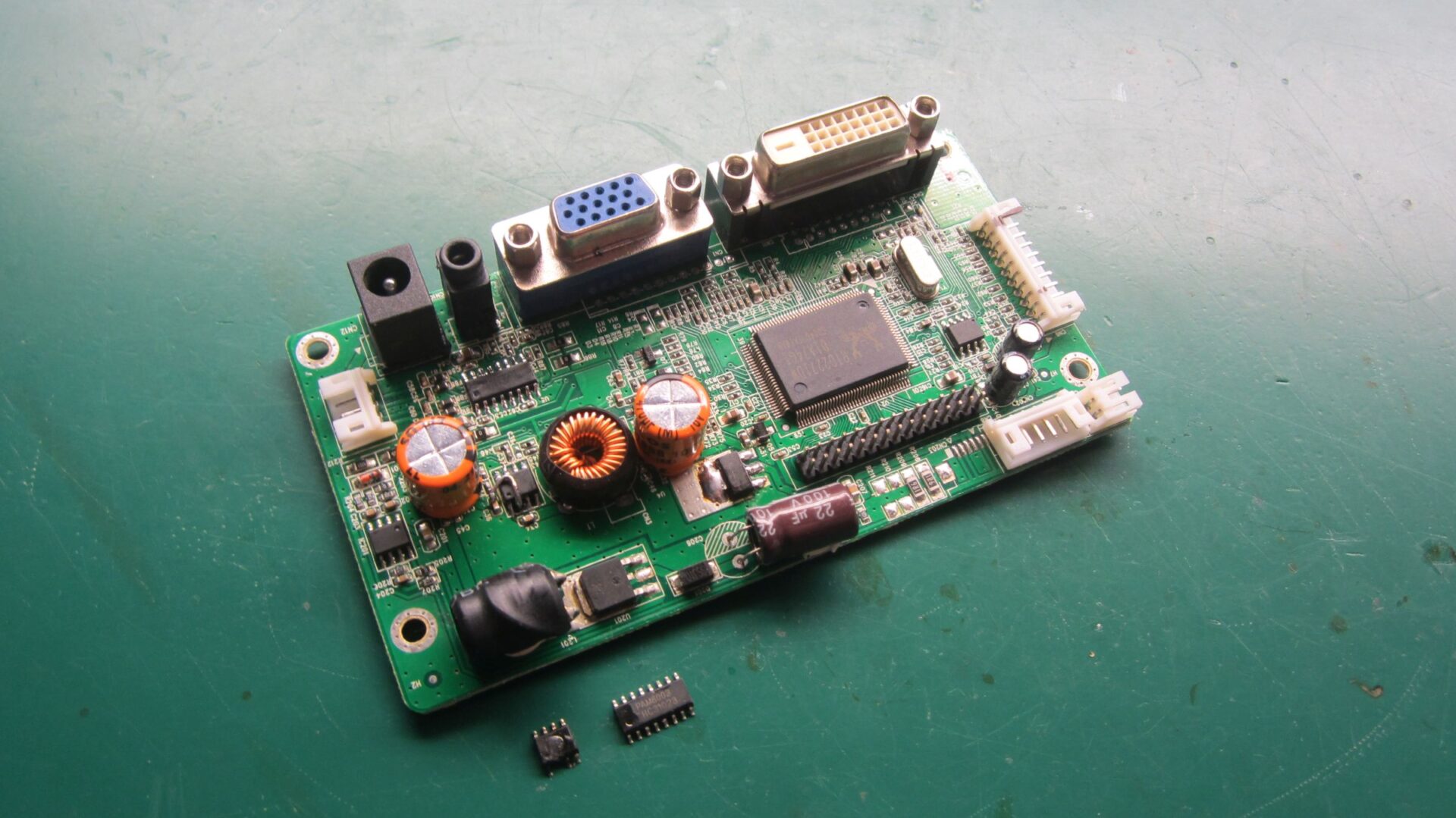 Στο εργαστήριο μας ήρθε η παρακάτω πλακέτα απο Inverter φωτοβολταϊκού η οποία χρειαζόταν τροποποίηση με το κιτ του κατασκευαστή για να εγκατασταθούν νέοι πυκνωτές. Αφότου αποκολλήθηκαν οι κατάλληλοι πυκνωτές, τοποθετήθηκαν 6 x νέοι και επιπλέον τοποθετήθηκαν αναμονές για άλλους 3 x εξωτερικά της πλακέτας.